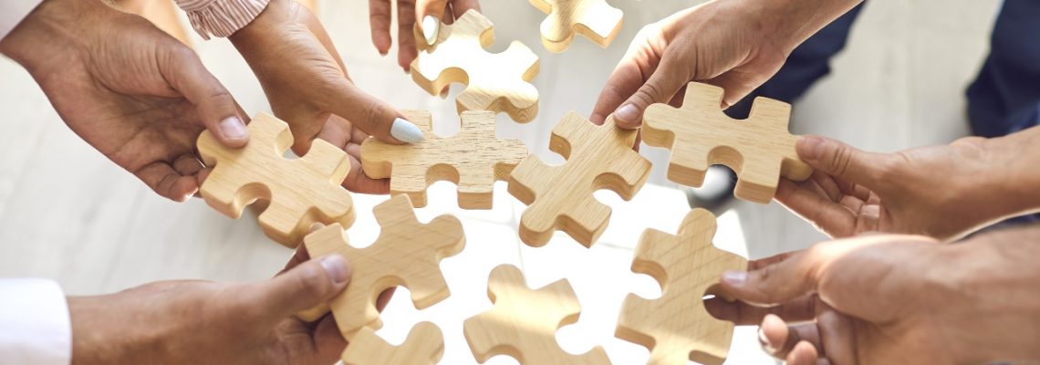 Ilustrační foto © Adobe Stock: Na snímku jsou ruce několika lidí, kteří skládají dřevěné puzzle.